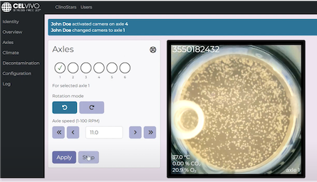 タブレットやスマートフォンおよびPCからリモートで、培養状況のモニタリングや設定操作がいつでもどこでも可能です。リアクターに対応した6個の独立したカメラで、それぞれのリアクターをリモートで観察し、リアルタイムでタブレット等から適切な速度やガスの調整を行うことができます。