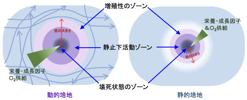 動的培地により、ガス交換の促進と栄養や成長因子が澱みなく細胞へ供給され、元の組織構造を模倣したスフェロイドやオルガノイドが、由来組織の生理学的特徴を示す必要十分な形態まで、より早く安定して成長することを可能にします。