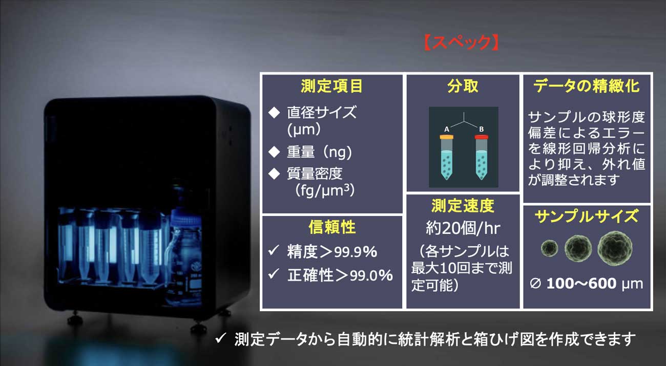 3次元培養の新しいパラメータとしての質量密度をラベルフリーで測定できる革新的な分析装置です。